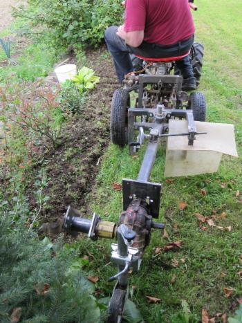 Hier habe ich nur die Oberfläche angefräst, damit der Boden antrocknet und das erste Unkraut vernichtet wurde.