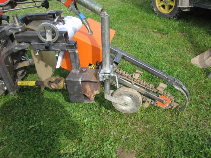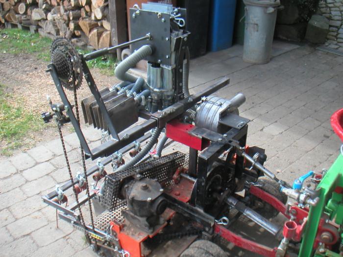 Habe das Getriebe von der Spezialfräse einfach gedreht und die Messer einseitig montiert. Dann noch ein Gleitteller montiert, damit sich die Frässcheibe nicht eingräbtHier zum Video