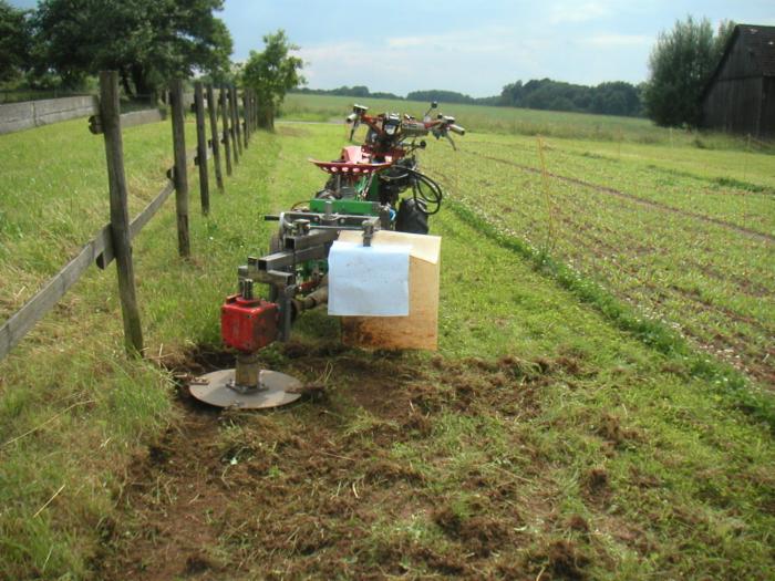 Durchfahren der Reihen wird der Boden aufgelockert. Dabei wird das Unkraut mit