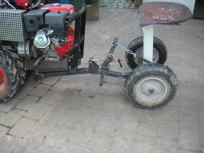 Sitzkarre um beim Mulchen nicht mit zulaufen.